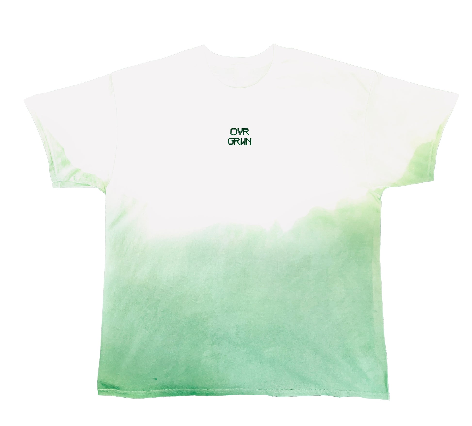 'Ovr Grwn Peak': A limited-edition hand-dyed T-shirt radiating a brilliant shade of green. Crafted in 100% cotton, each piece uniquely varies, ensuring your style stands out.